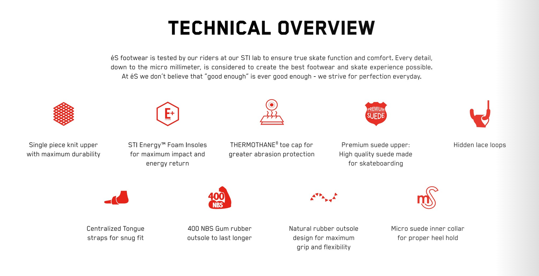 Grip and durability are crucial for top performance. éS 400NBS rubber outsoles last 2-3x longer than competitor products and offer superior exibility to improve board feel and control.